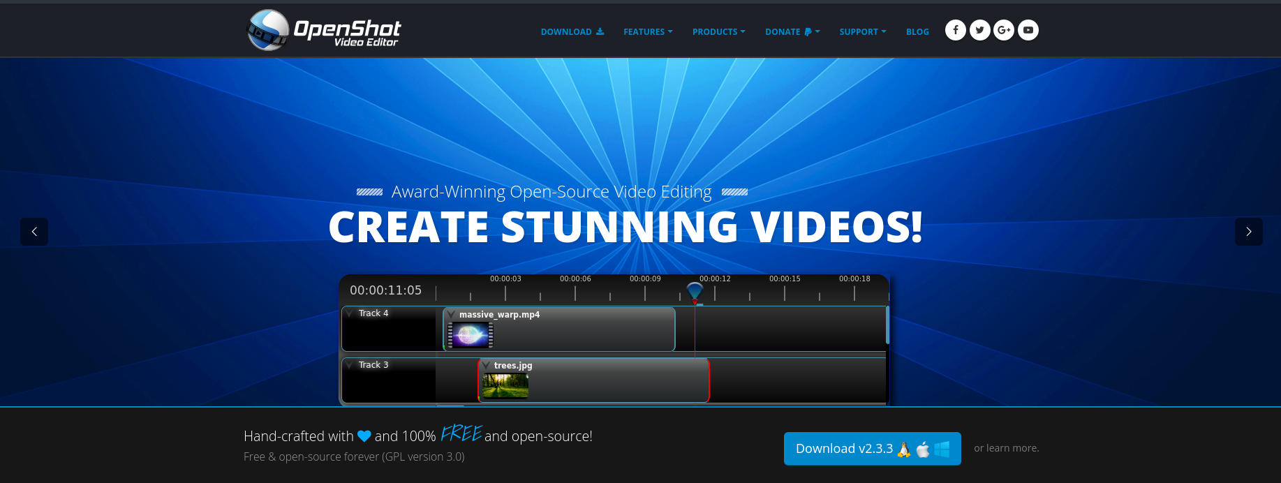 I am proud to announce the release of OpenShot 2.3.3, which addresses many serious stability issues, and the launch of our amazing new website (www.openshot.org). It's been a busy month so far, and I'm super excited to roll out these improvements!